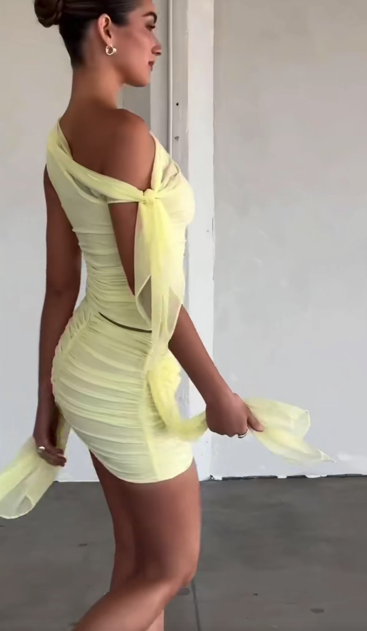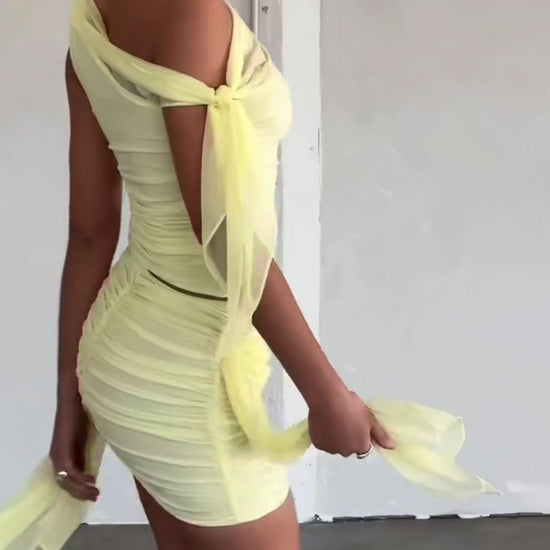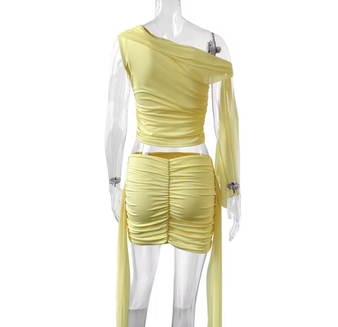 One-Shoulder Mesh Zweiteiler Gelb